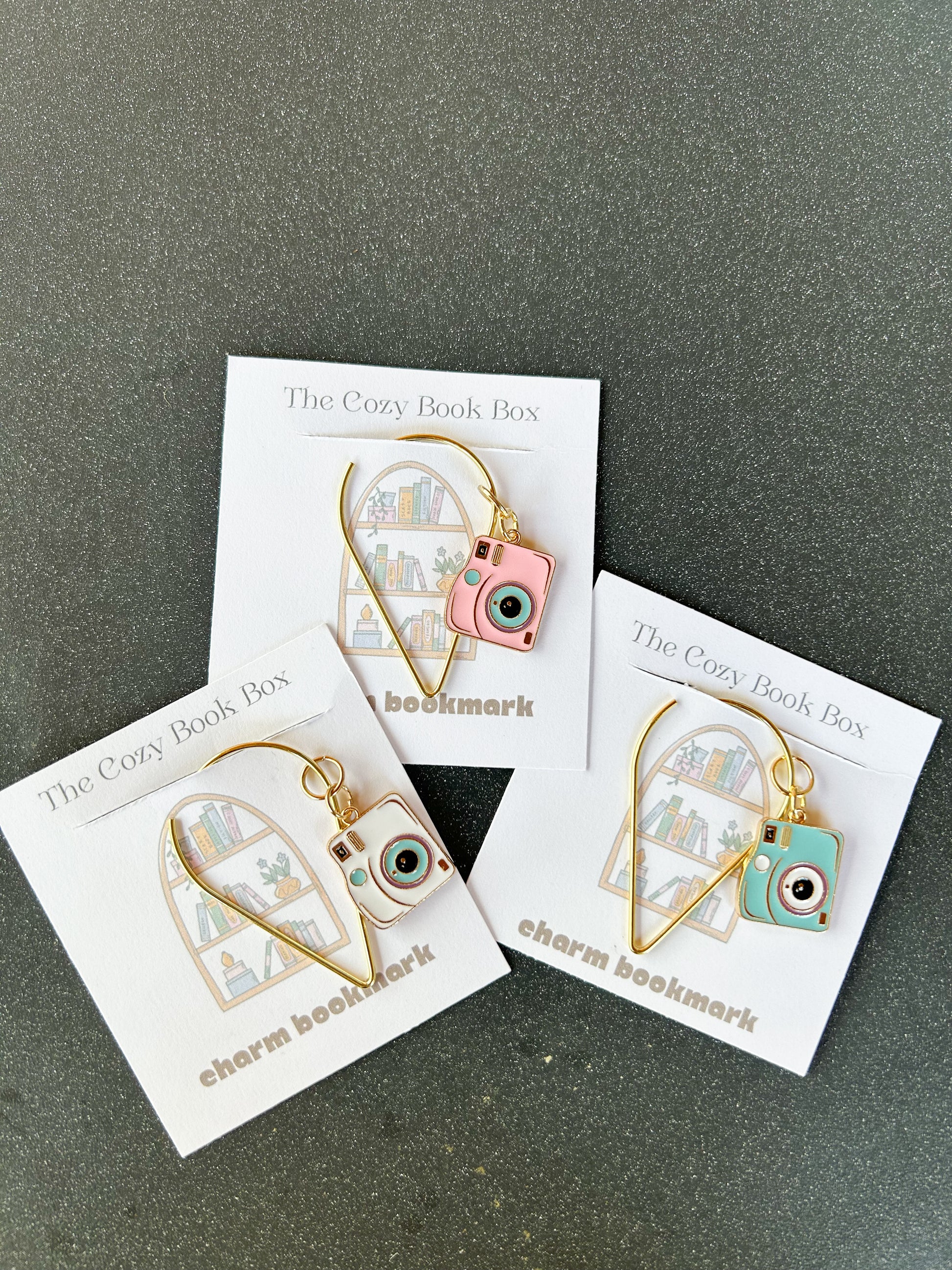 Choose between a white, pink, or blue Polaroid charm to make your spot in your current read!