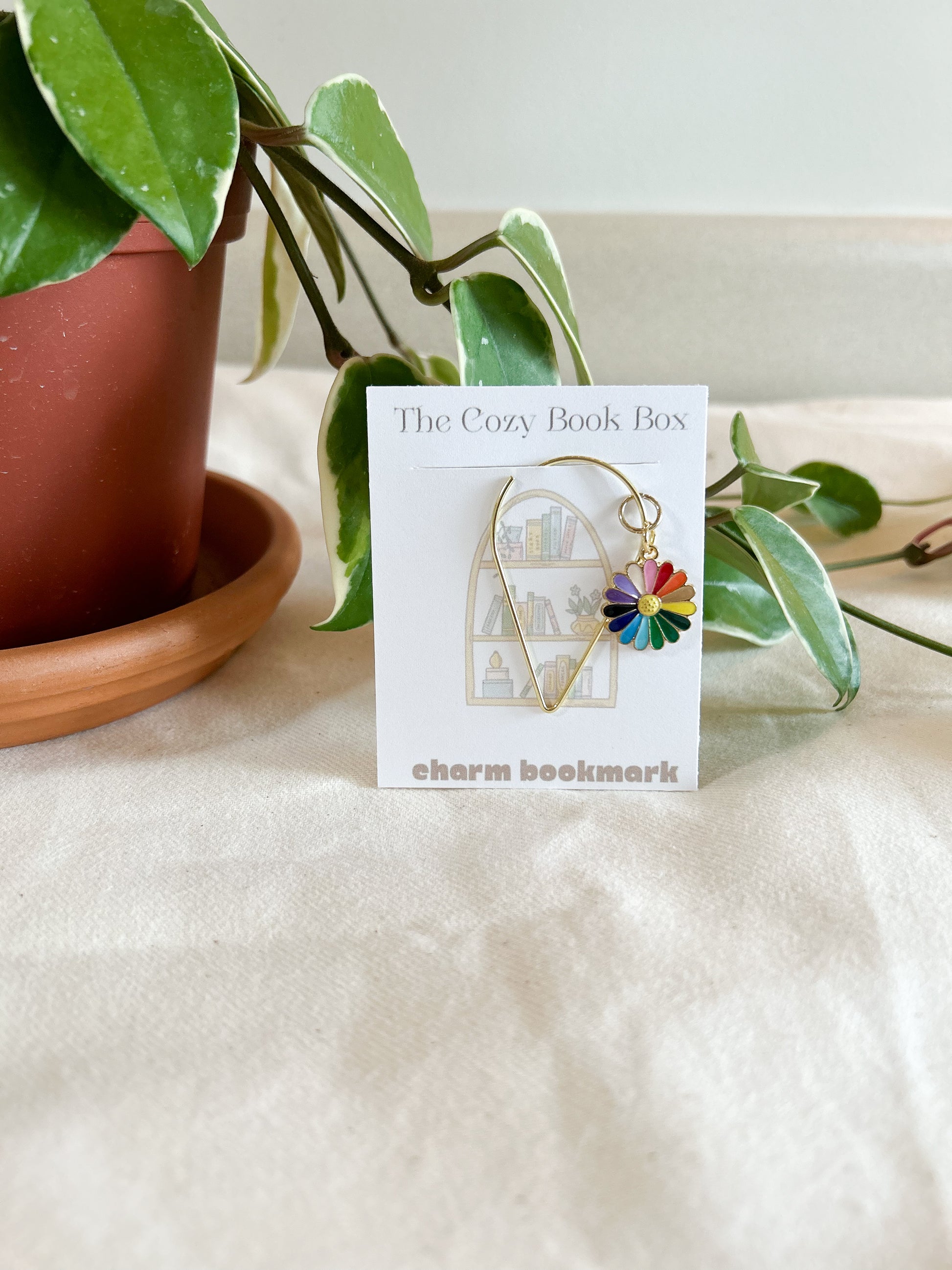 Mark your spot in your current read with the rainbow floral bookmark charm!