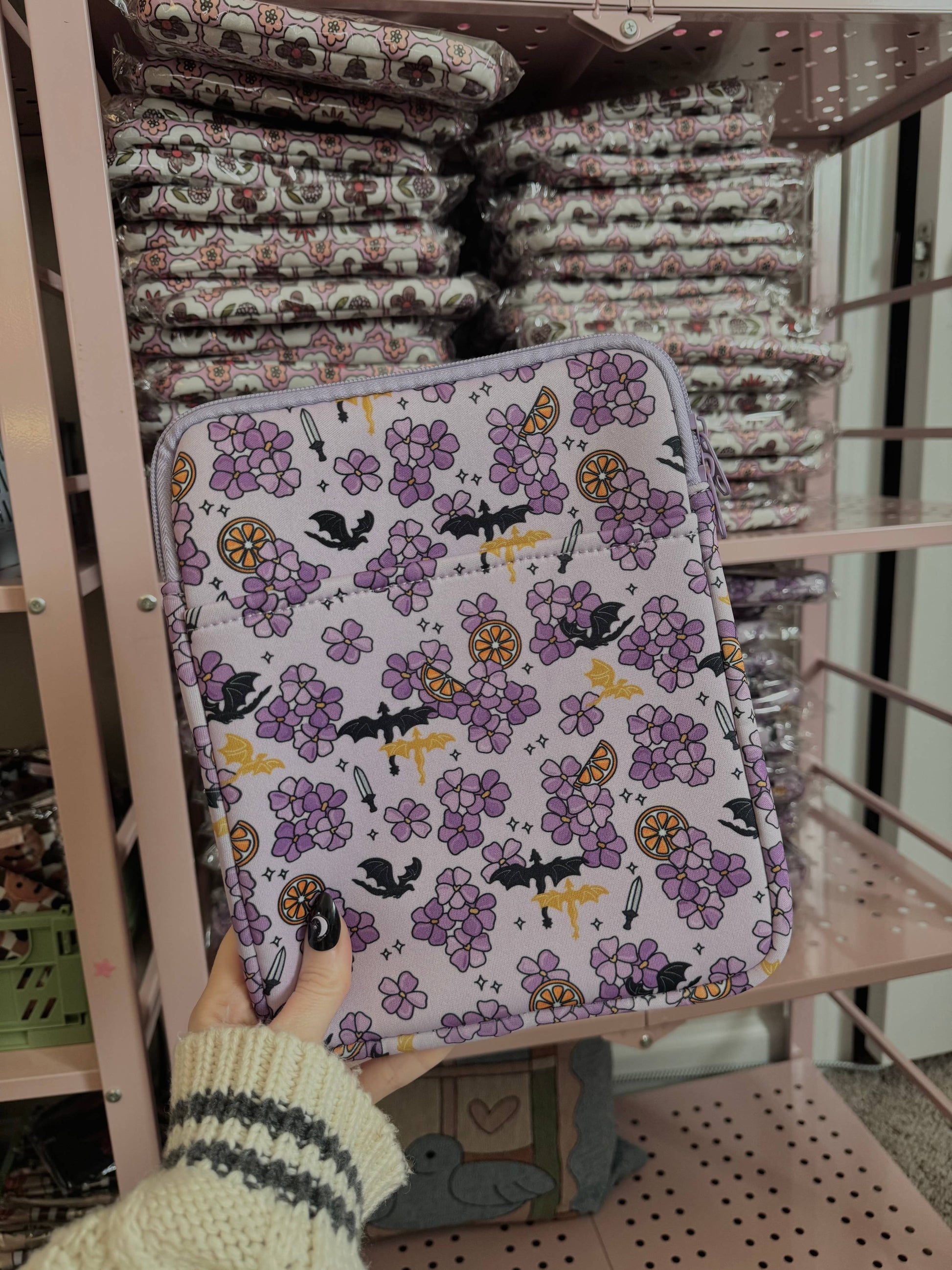 Zipper Kindle / E-Reader or Standard Paperback Book Pouch This cute little padded sleeve is perfect for any dragon lover. Has a front pocket / pouch to fit any extra reading accessories such as your kindle or E reader, notebook, pens, ect! It also has a zipper to help keep the book safe inside. Details: ✨Neoprene Material ✨Double Zipper ✨Size : 6.7in x 8.7in Care Instructions: ✨Machine Washable ✨Must Air Dry - Do not throw in the dryer.